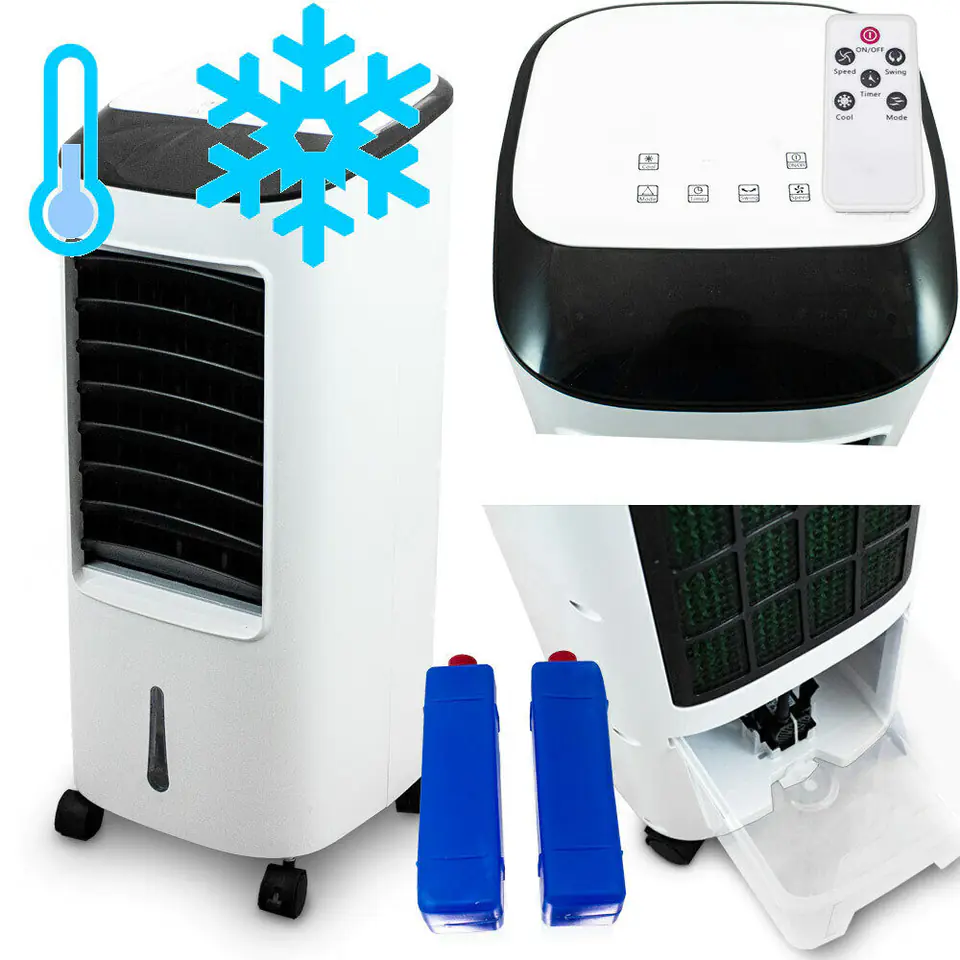 A modern solution combining a fan with an air conditioner. The Evoma air conditioner is a must have 4in1 product - cooling, humidifying, purifying and ventilating. Hot days, sleepless nights? No more, thanks to mobile water air conditioning. The device has a touch control panel and the ability to control using a remote control. The fan ensures proper air circulation combined with the oscillation function, thanks to which it guarantees the feeling of natural gusts of wind. In the period of elevated temperatures, the air conditioning is additionally equipped with 2 ICE BOX inserts, which gives a stronger cooling effect. Thanks to the portable air conditioner, the air in your home will be cooled: lowering the air temperature in the room, humidified: natural water humidification, purified: the air conditioner reduces the amount of dust and allergens.