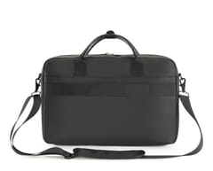 - Comfortable eco leather handle. Laptop space for 15.6 laptops. Option to fasten the handle. Zips. Polyester material.