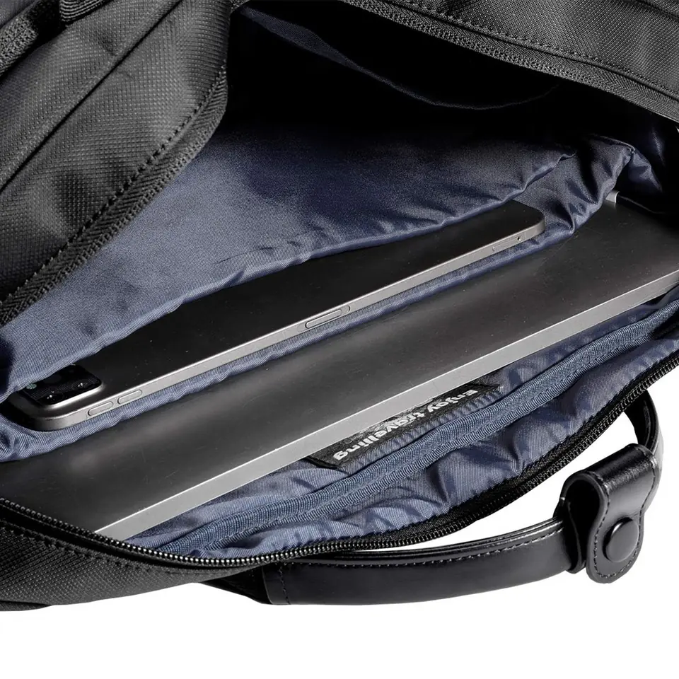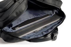 - Laptop compartment in main compartment. Additional compartment for A4 documents, accessories, etc. Two pockets for utensils or accessories inside the bag and one pocket inside for documents.