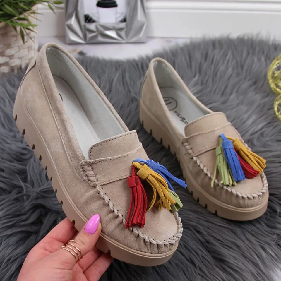 Mokasyny skórzane z frędzlami Filippo W PAW327A beżowe