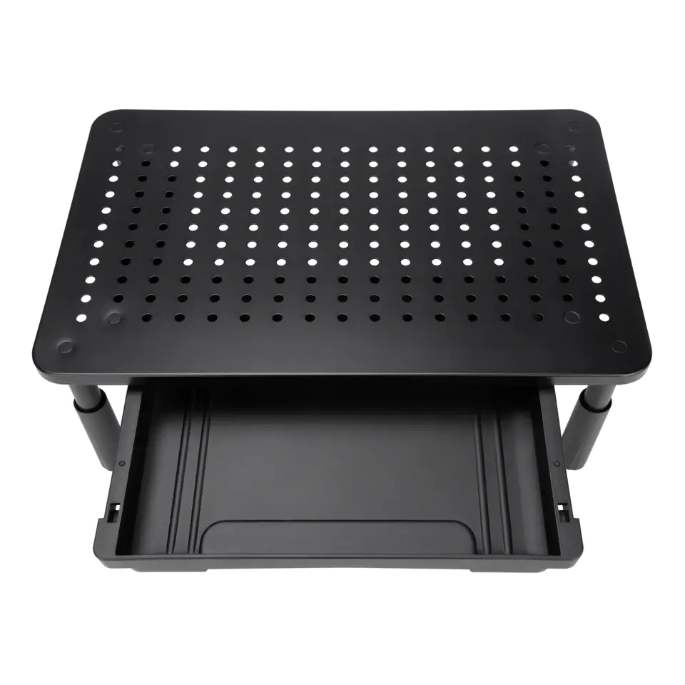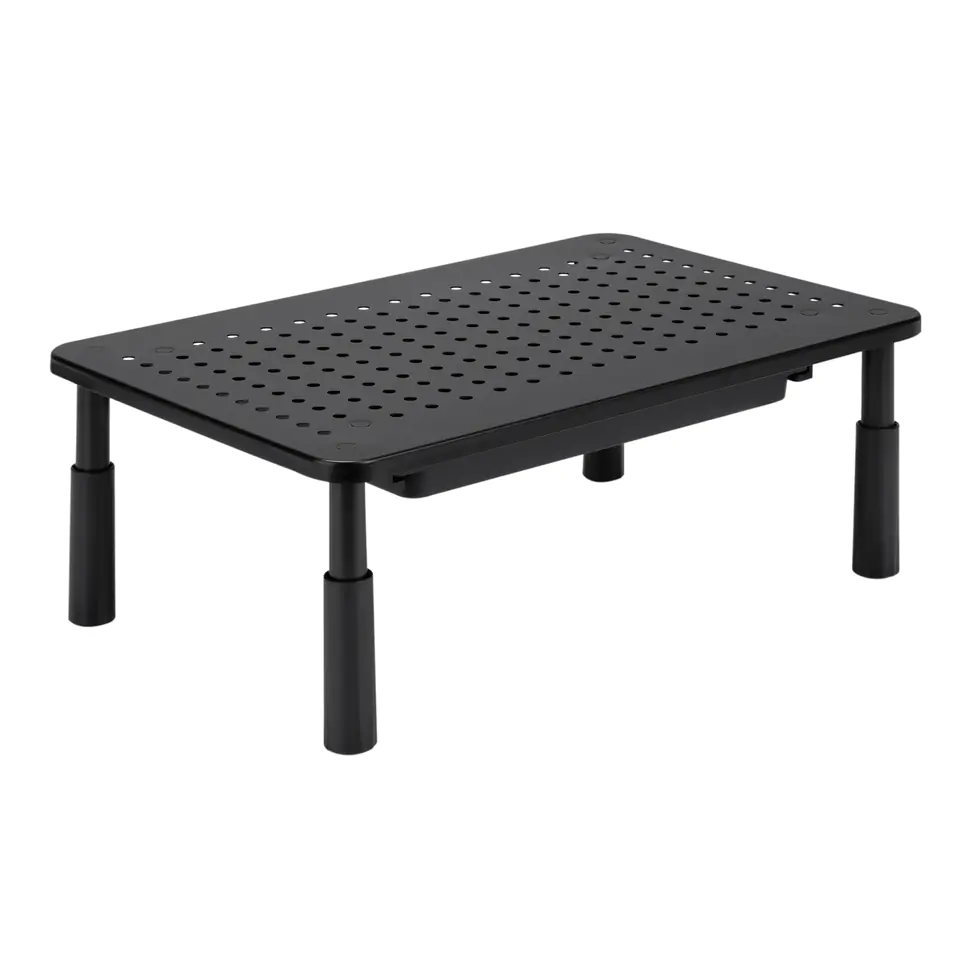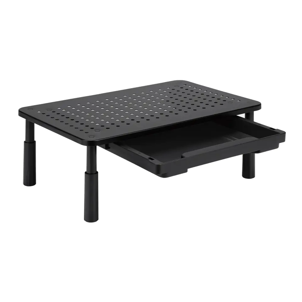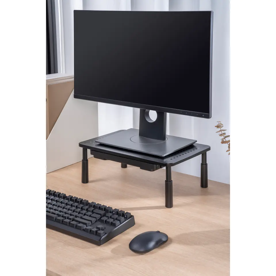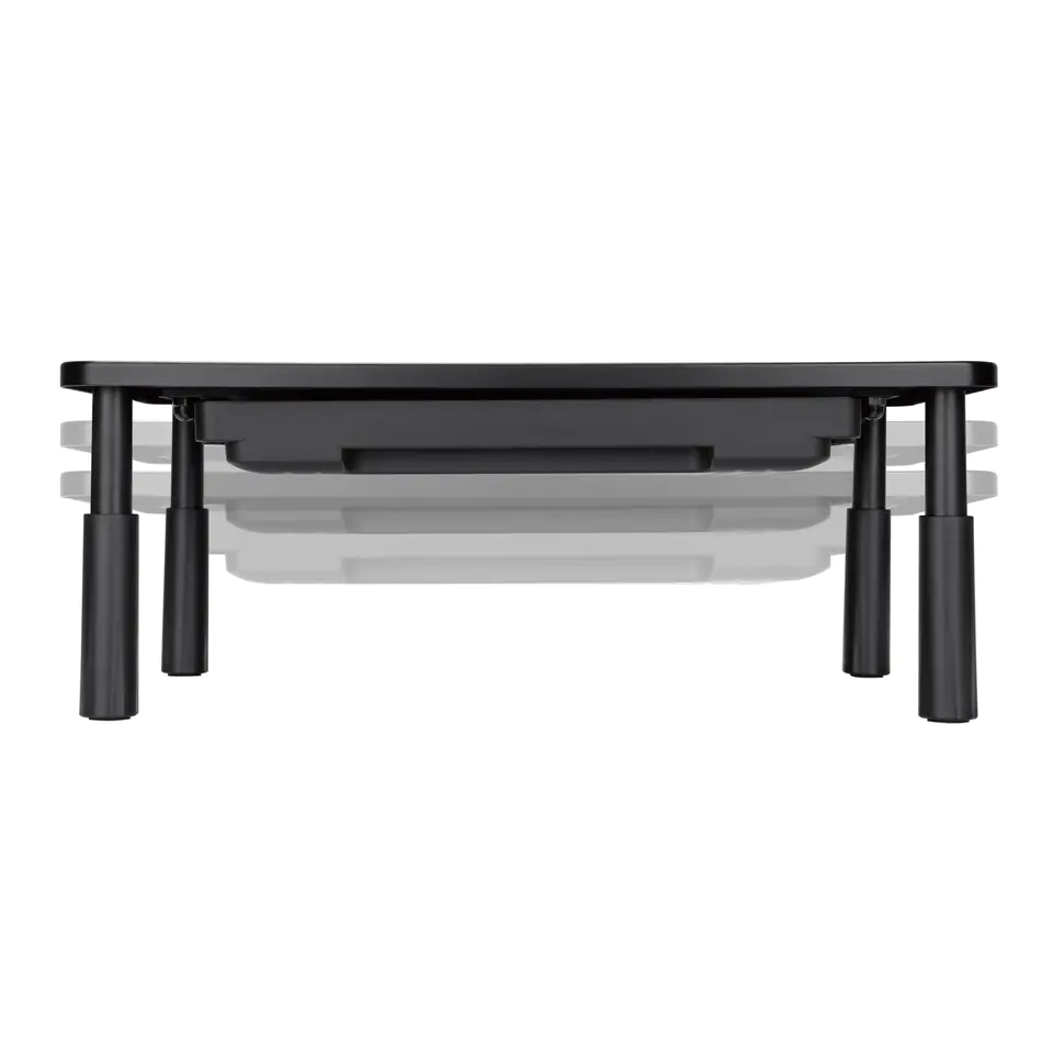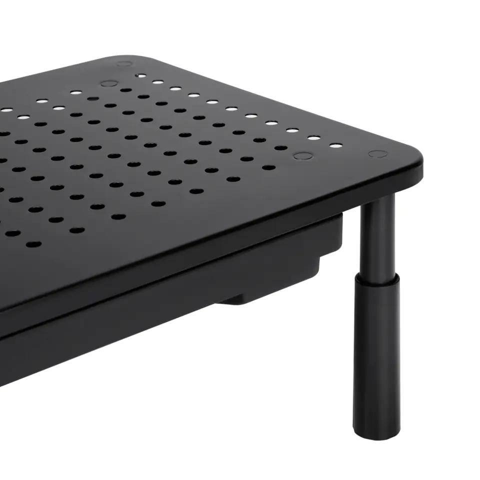 Maintained in classic black, the stand for a monitor or laptop allows for better use of space on the desk. By placing the monitor on a raised platform, you can improve the ergonomics of the workplace by getting additional space underneath for office accessories, a tablet or, in the case of gamers, e.g. for additional game controllers and headphones.