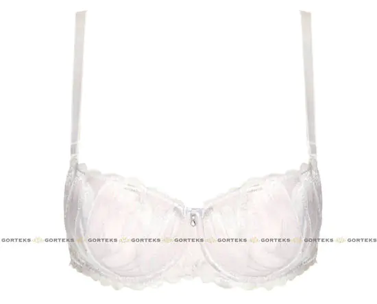 MISKI – TYP I WYKOŃCZENIE: Miseczki szyte, wykonane z cienkiej pianki gorseciarskiej, na zewnątrz w całości ozdobionej dzianiną, koronką lub haftem. Wewnętrzna część miseczek wyściełana jest przyjemną bawełną. Wewnątrz miseczek wyjmowane wkładki push-up, umieszczone w specjalnie przeznaczonych do tego kieszonkach.