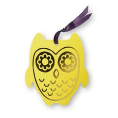 Bookmarks, Owls - Yellow Owl Beautifully cut bookmark in the shape of an Owl with a protruding ribbon. Perfect for highlighting recently read or favorite passages in books. Decorated with a delicate motif. Compose your own collection with tabs: Pink, light green or gray-blue owl. An exclusive and practical gift. Dimensions: 11 cm x 10 cm x 0,1 cm. 81990