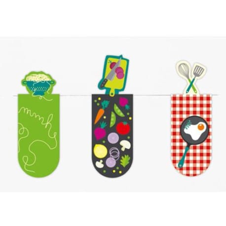 Magnetic bookmarks, Cooking Beautifully illustrated bookmarks with protruding, decorative elements. Perfect for highlighting recently read or favorite passages in books. They are perfect for indexing notes, documents in the office, at school and at home. Each set contains 3 tabs with different designs. Dimensions: 5,5 cm x 2 cm x 0,1 cm. 31121