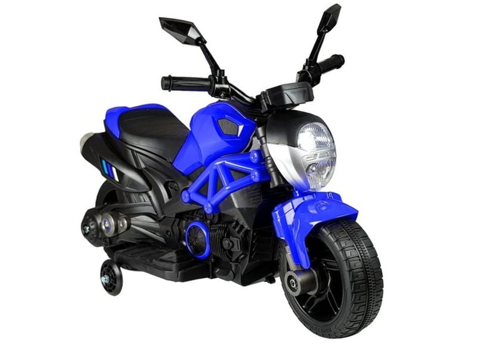 The GTM1188 differs from other battery bikes primarily in design - most other models are modeled on motocross or sports vehicles. Battery-powered motorcycle The GTM1188 has a footrest that is an integral part of the body, thanks to which the child feels more confident on it. The side legs are hidden behind the footrest, which makes them unobtrusive, emphasizing the realism of the vehicle. The motorbike is also equipped with side mirrors, a double exhaust pipe and a license plate slot where your child can put their own sticker!
