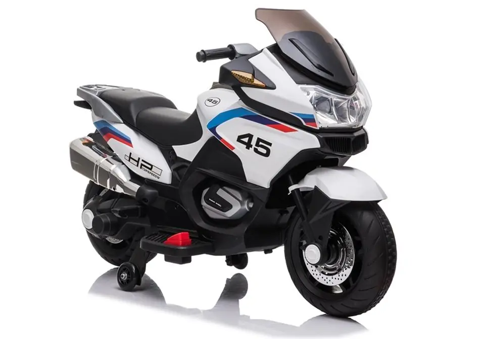 The sports version of the battery racer attracts the eye with both unusual colors and construction and decorations characteristic of full-size vehicles. On the body made of durable and solid ABS plastic there are model markings, making the vehicle look very modern and original. This sensation is enhanced by the imitation of chrome elements resembling the exhaust system, which will certainly impress every child. Side wheels are also a highly important solution , making it easier for children who have problems with maintaining balance while driving. Fun has never been so easy!