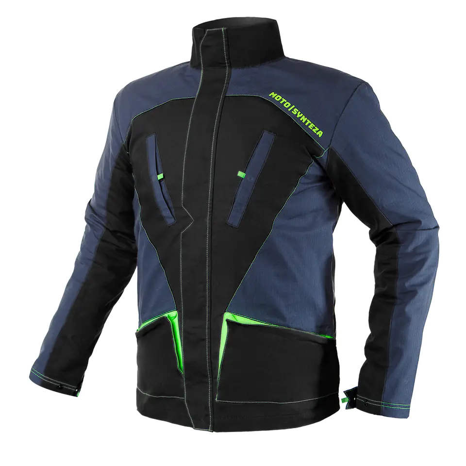 Motosynthesis work sweatshirt, size M, fabric composition 100% cotton, weight 210 g / m2, made of cotton ripstop fabric ensures high durability and tear resistance, additional reinforcements made of Oxford fabric in places most exposed to abrasion, multifunctional and capacious pockets, pleat covering the main zipper, profiled elbows, adjustable sleeve circumference with press studs, inner label with name, neon elements, unique own design, CE certificate for compliance with EN ISO 13688:2013