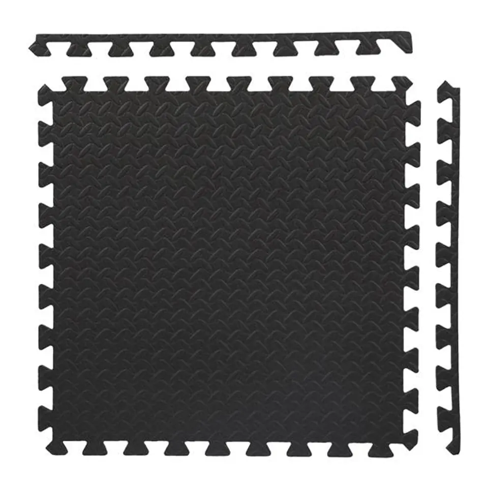 The puzzle mat effectively protects the floors against damage and additionally dampens the sound during training with weights. Reduces vibrations caused by exercise. The mat can be used under sports equipment such as a bench, exercise bike, elliptical trainer, treadmill, rower or atlas. Thanks to the puzzle mounting system, the mat can be freely configured. Deep indentations guarantee the stability of the folded mat. Advantages: Protects the floor from damage Reduces noise and vibration Easy joining and disconnecting components Easy to clean Non-slip, perforated surface Specification: Material: EVA Thickness: 12 mm Dimensions of one element: length: 610 mm width: 610 mm Dimensions after folding 4 elements: length: 1180 mm width: 1180 mm Hardness: 30 Notes: Warranty 24 months