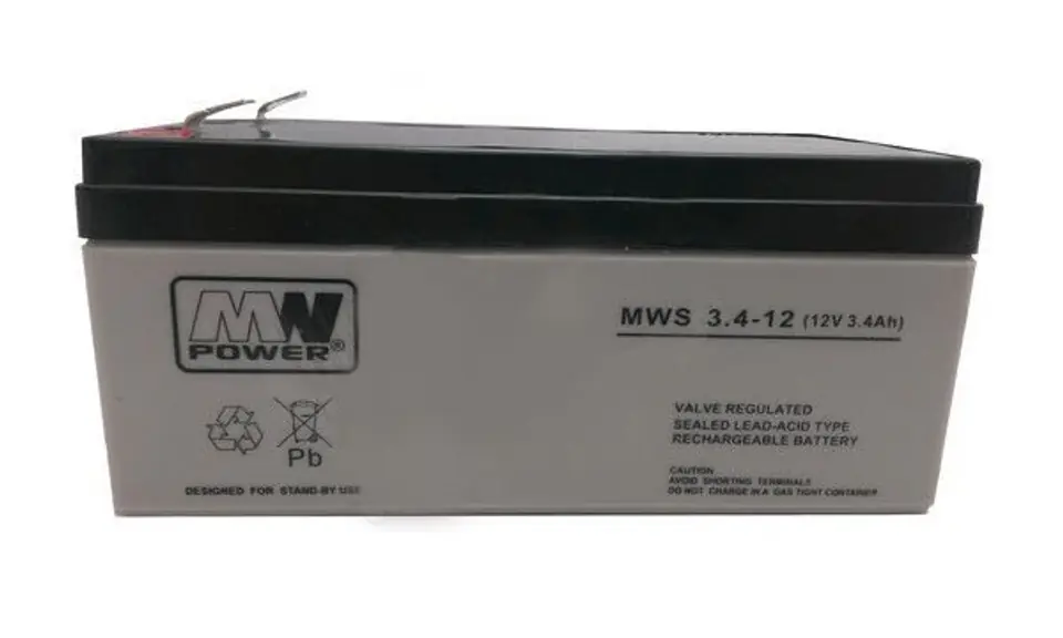 MPL MW POWER MWS 3.4-12 UPS battery Lead-acid accumulator VRLA AGM Maintenance-free 12 V 3,4 Ah Black, Grey