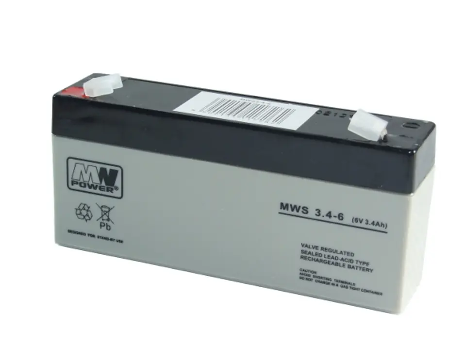 MPL MW POWER MWS 3.4-6 UPS battery Lead-acid accumulator VRLA AGM Maintenance-free 6 V 3,4 Ah Black, Grey