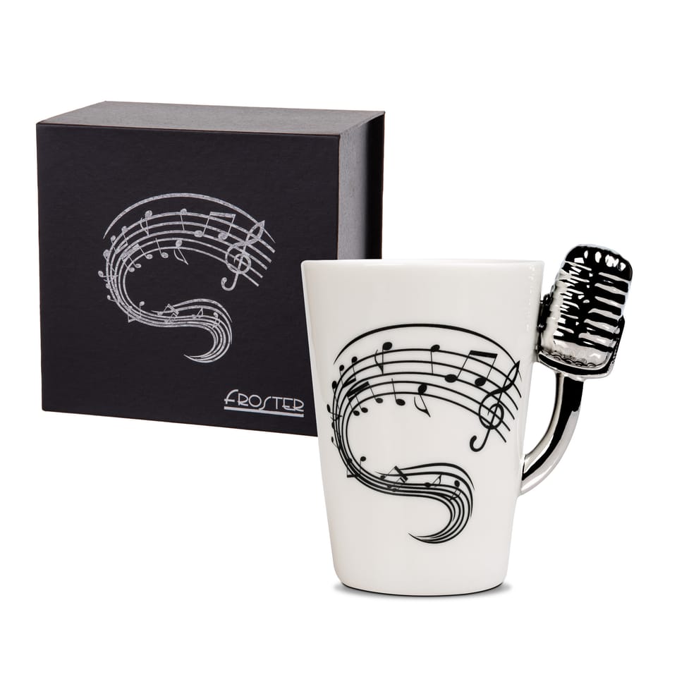 Vintage music mug with microphone What can you give to a person who sings beautifully or speaks wonderfully? Preferably a mug, because we all know that both of these activities greatly increase thirst. And if we want to make her feel special, let's give her a cup with a microphone-shaped handle, showing how eager we are to listen to her. Thanks to it, everyone, drinking morning coffee, will be able to feel like a rock star or a world-famous journalist. A gift for a musician Mug Microphone is the perfect gift for professional singers, for those who are just going to become them, as well as for anyone who likes to sing, although they do not intend to do it professionally. Not only for vocalists Mug The microphone is a great gift for good speakers, regardless of whether it is related to their profession or character. Trainers, lecturers, radio broadcasters and artists will be happy with it – a mug will be useful for them with tea or coffee during a break during work. With this gadget we can appreciate a colleague who always has a lot to say, a dad or grandfather giving great toasts or a friend who is a master of cutting retort.