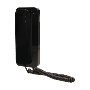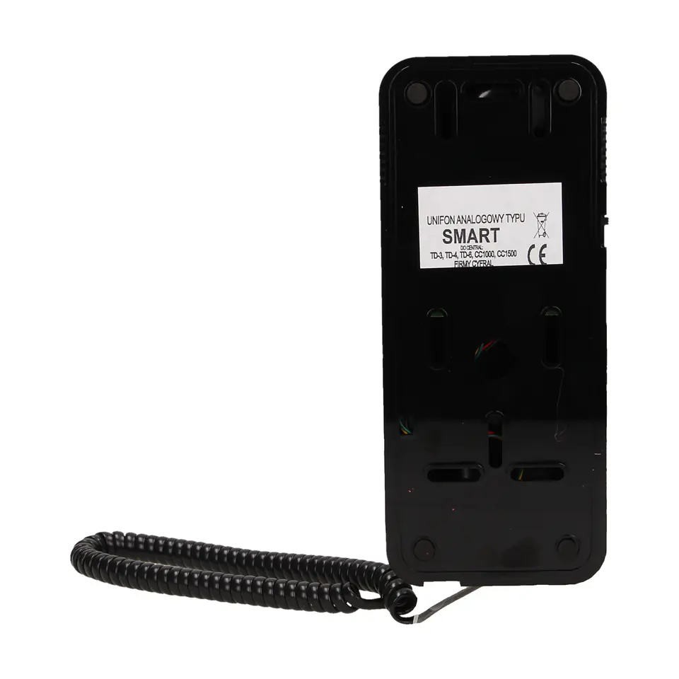 Intercom uniphone, analog designed to work in two-core systems with CYFRAL intercom control panels type TD3, TD4, TD6, CC-1000/1500, secrecy of conversations ? no eavesdropping between tenants, 3-stage volume control with the possibility of complete muting, simple connection method (without the need for soldering), power supply from the intercom control panel, an additional multifunctional button that allows, for example, to open the gate or turn on the lighting. It is possible to start the electric strike without lifting the handset.