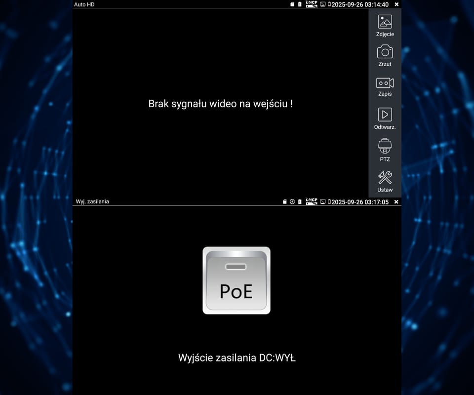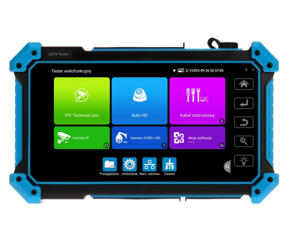 Multifunctional tester of AHD, HD-CVI, HD-TVI, IP cameras, analog cameras, Speed Dome (PTZ), equipped with many additional functions necessary for commissioning CCTV systems