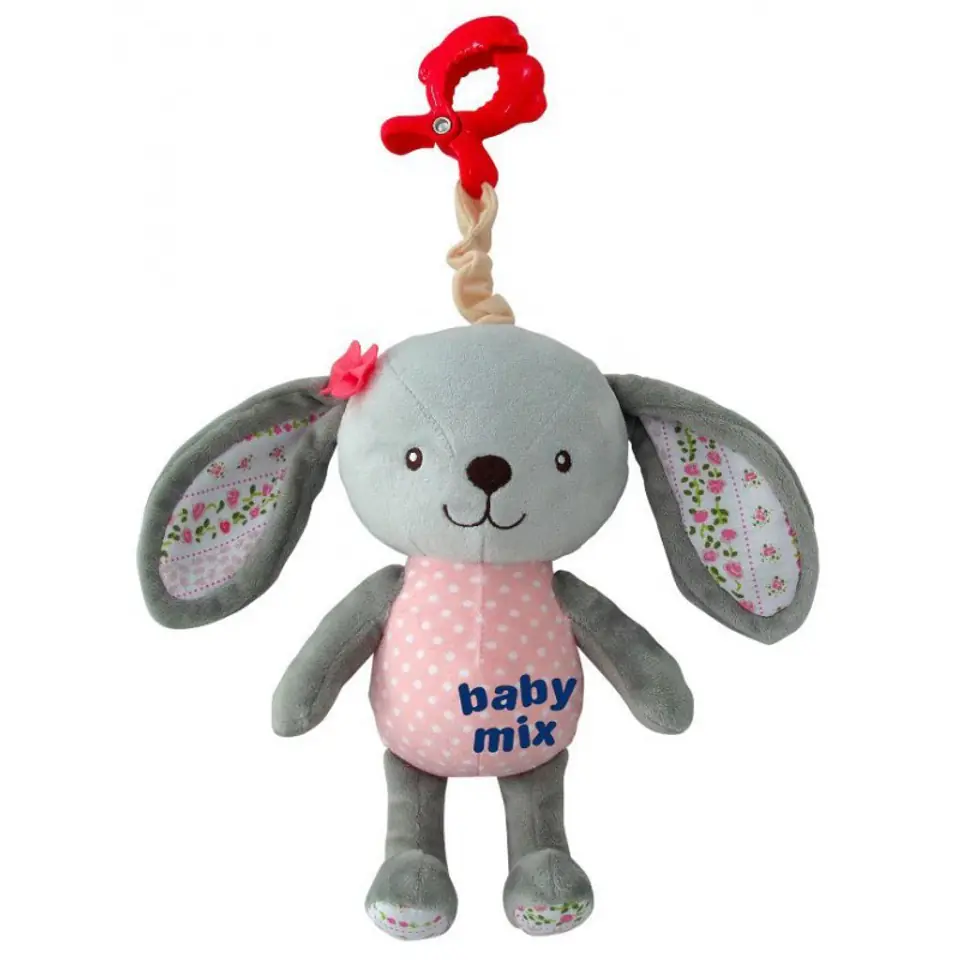 Beautiful plush toy with Baby Mix sound. The toy is made of soft plush soft fabric with a grip clip. The melody of the toy machine will interest the child and calm him down. Ideal for babies. The elements of the toy develop the child's sensory perception and stimulate his imagination. It has a universal hook that allows you to attach to a stroller or cot. The toy is made of products that are safe for children. Height approx. 24 cm. Suitable for babies from the first days of life.
