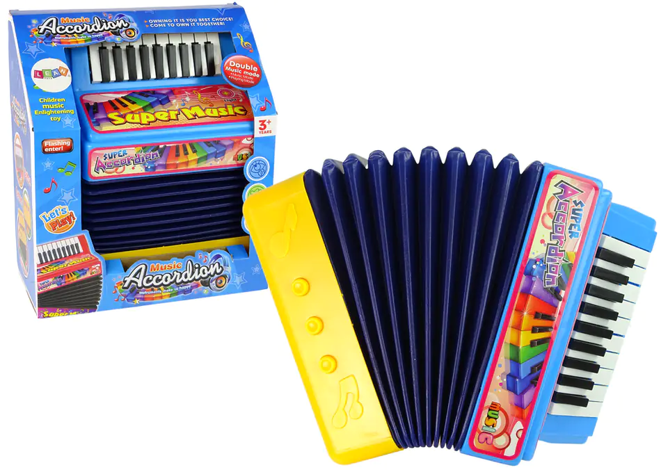 A musical toy that will satisfy little lovers of accordion sounds. The sound is pleasant to the ear, and in addition, the instrument hides over 20 accordion hits. The accordion will appeal not only to children! Fantastic toy for children who like music, fun fun. An accordion for a child that looks like a real musical instrument develops the child's motor skills and hearing. The principle of operation of the accordion is the same as in a real instrument, to bring out the sound you need to unwind and fold the harmonica.