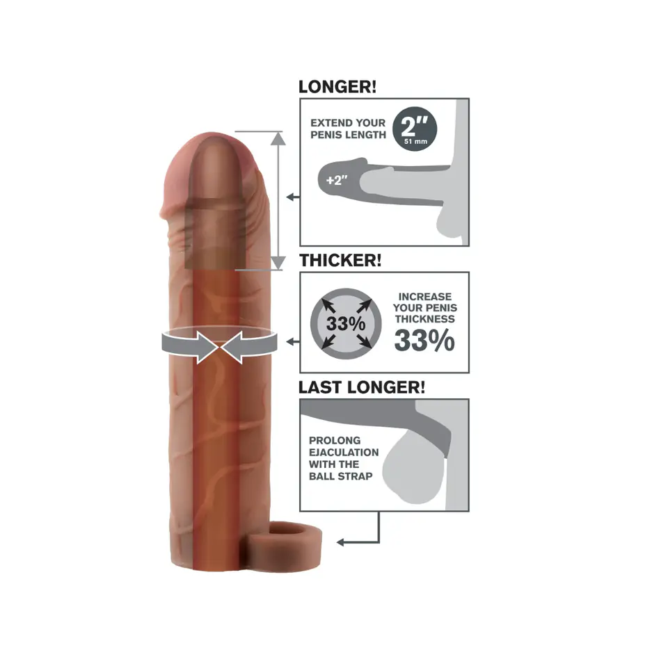 Nakładka na penisa Pipedream Fantasy X-tensions Perfect 2" Extension with Ball Strap Brown