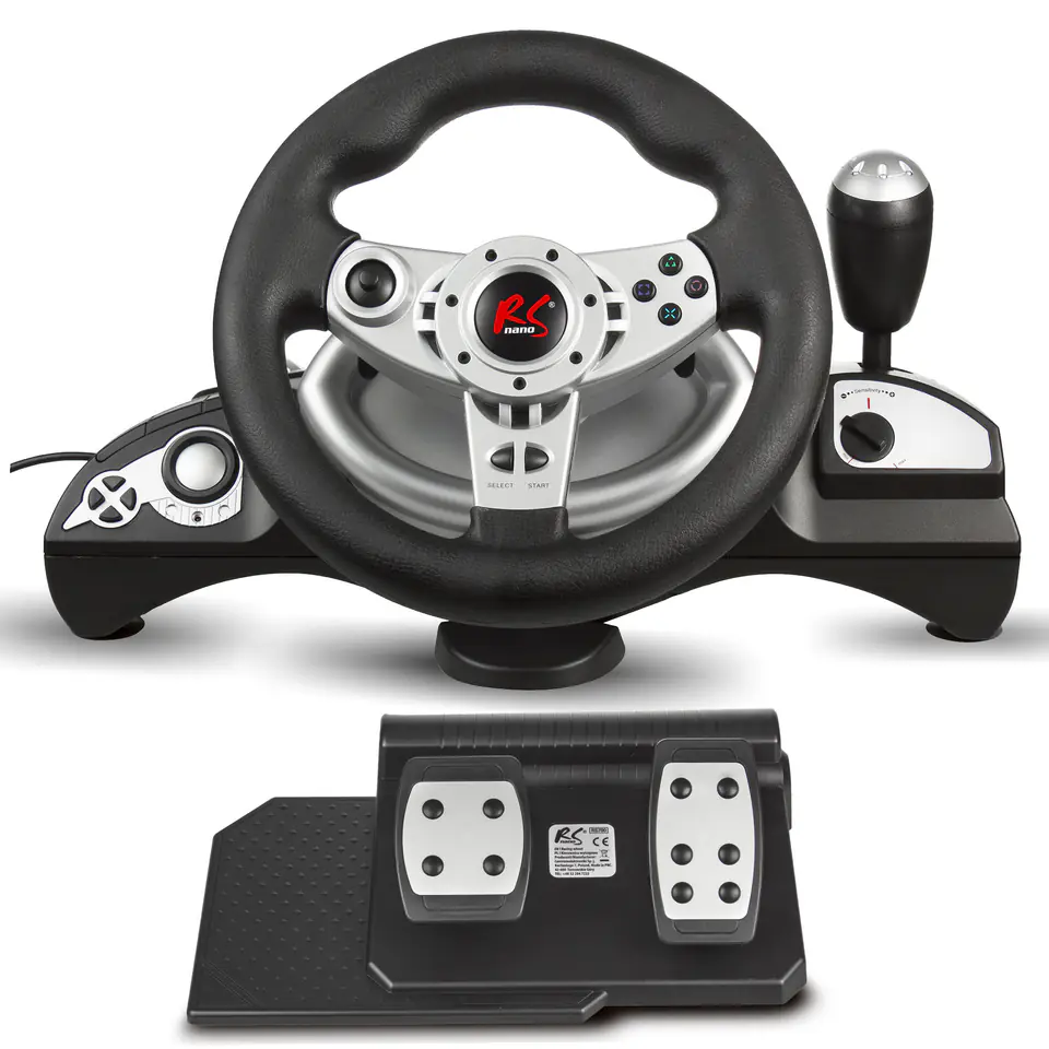 Kierownica posiada aż dwanaście przycisków, więc bez problemu przypiszesz do nich najważniejsze funkcje z różnych gier. Urządzenie posiada także popularny „krzyżak” oraz 4-kierunkowy Dual-Pad minijoystick, dzięki któremu możesz nawigować po menu gry, bez użycia klawiatury. W zestaw wchodzą także solidne i precyzyjne pedały analogowe do przyspieszania oraz hamowania. Za kierownicą znajdują się manetki do zmiany biegów, dzięki którym w szybki i komfortowy sposób możesz manualnie przerzucać biegi.