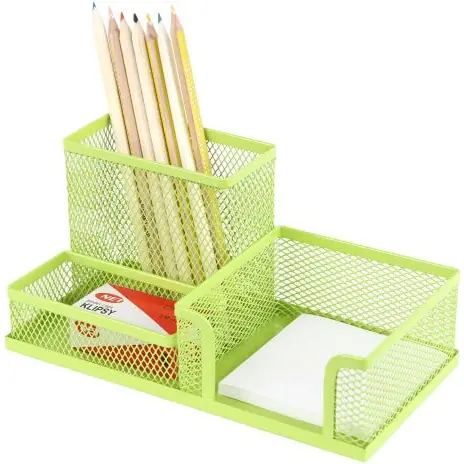 Desk toolbox - a combination of simplicity and functionality. It has 3 practical compartments that will take care of the order on the desk. Made of metal mesh covered with varnish. The original shape makes it a unique complement to a modern office.