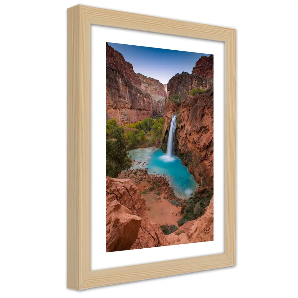 Natural Frame Poster, Blue Waterfall Among the Rocks Size 60x90