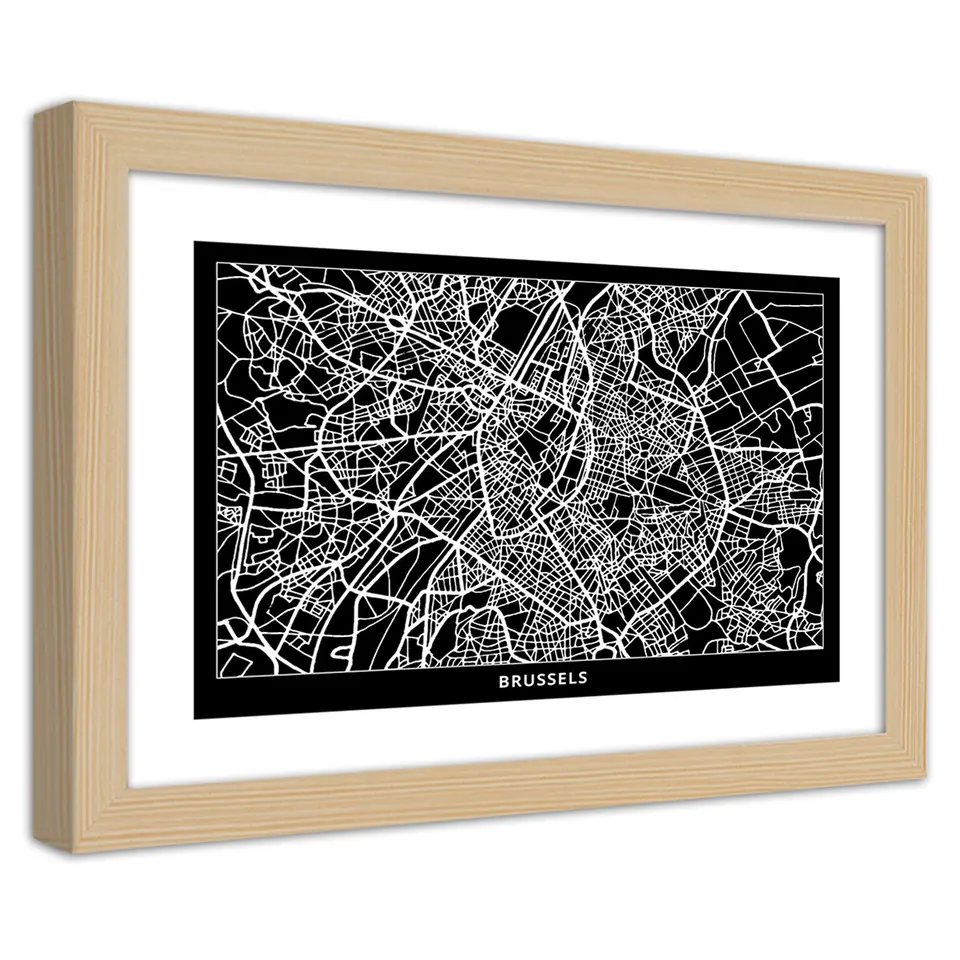 Natural frame poster, City plan Brussels Size 45x30