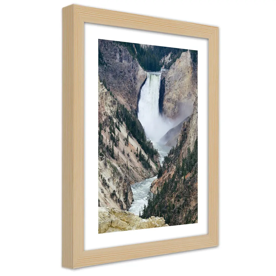 Natural Frame Poster, Great Waterfall in the Mountains Size 40x60