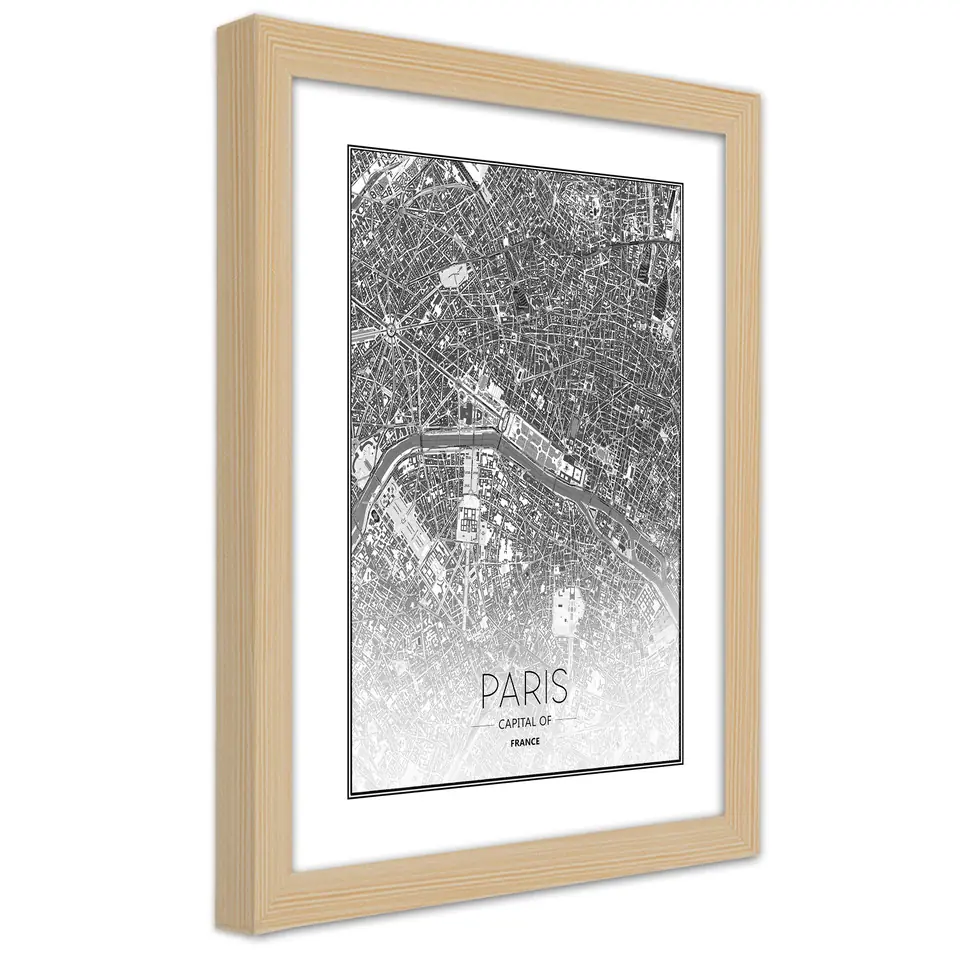 Natural Frame Poster, Plan of Paris Size 20x30