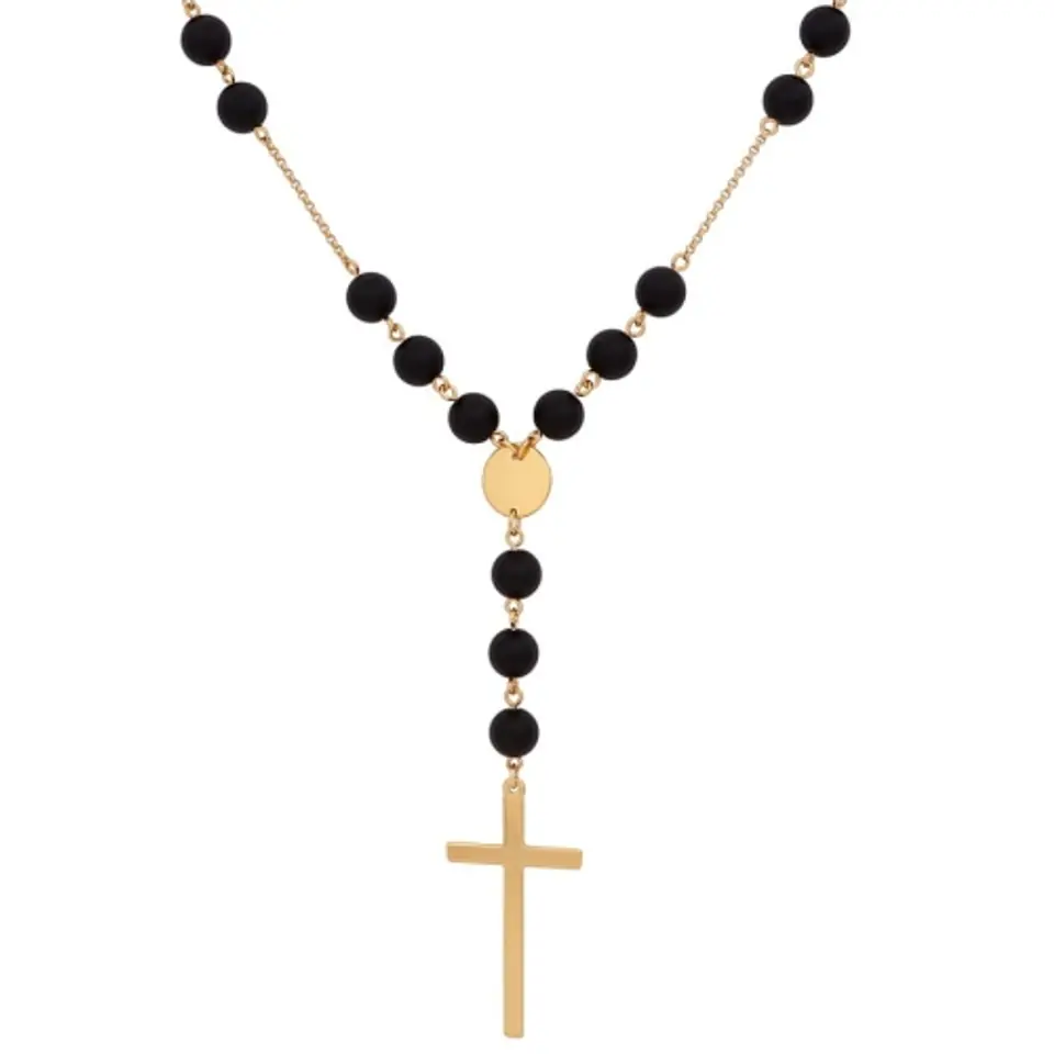 Necklace with a length of 50cm + 6cm extension, the total length of hanging balls and a cross 10cm. Volcanic lava stone balls. Delicate necklace in gold and black Unisex color.