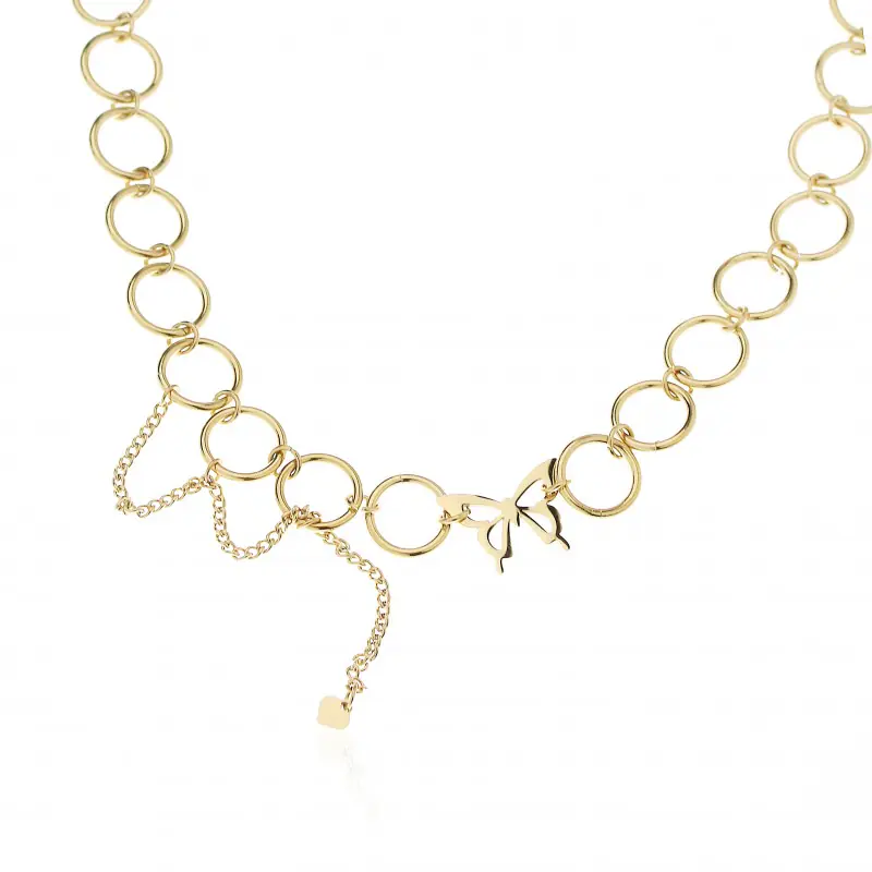 Fashionable surgical steel necklace New collection of stainless steel jewelry clad with 14 carat goldIt fits perfectly with elegant as well as everyday stylizations. An elegant accessory for every occasion, for dresses, sweaters and blouses. DIMENSIONS - necklace length: 45 + 5 cm SURGICAL STEEL is resistant to weather conditions, does not corrode, does not rust, does not darken!