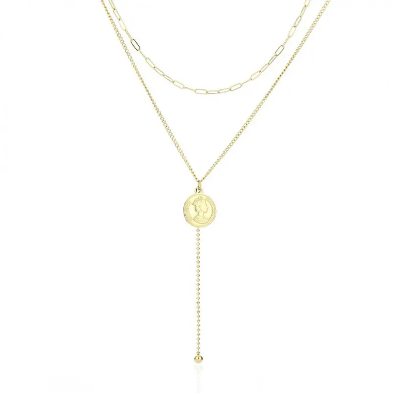 Fashionable surgical steel necklace New collection of stainless steel jewelry clad with 14 carat goldIt fits perfectly with elegant as well as everyday stylizations. An elegant accessory for every occasion, for dresses, sweaters and blouses. DIMENSIONS - necklace length: 44 + 36 + 6 + 51.5 cmSURGICAL STEEL is resistant to weather conditions, does not corrode, does not rust, does not darken!