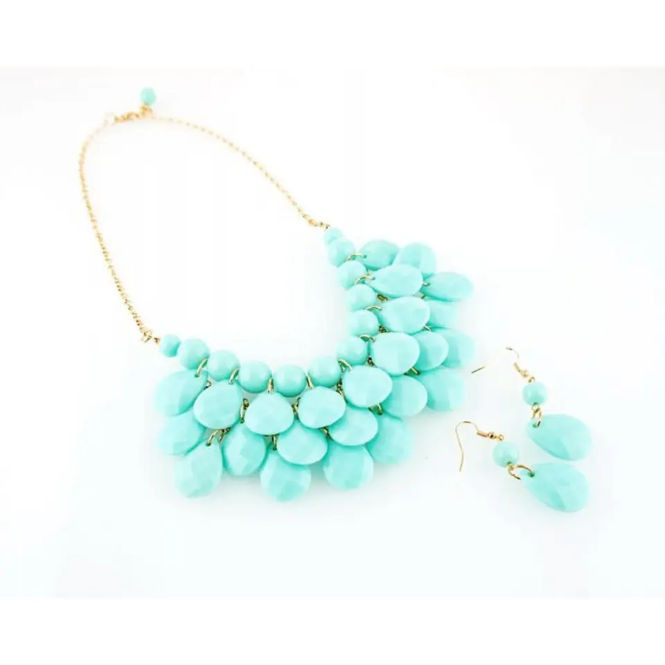 Impressive necklace made with attention to the smallest details. The extravagant design of the necklace will perfectly emphasize the natural beauty and class of a woman.It fits perfectly into elegant as well as everyday stylizations. The necklace thanks to a large number of decorations and earrings looks sensational! Dimensions:total necklace circumference about 47 cm (without adjustment)adjustment 7 cmlength of hanging ornaments approx. 2.4 cm