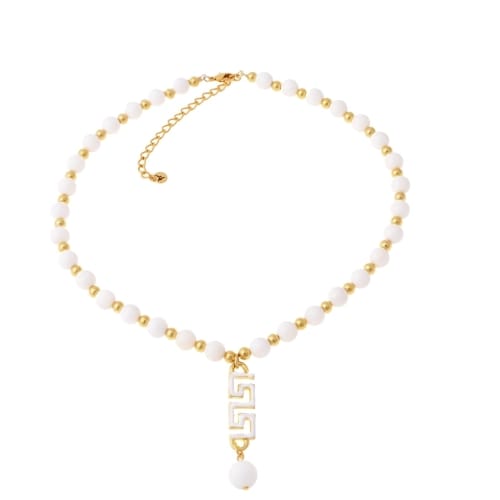 White onyx necklace and Greek pattern pendant with enamel