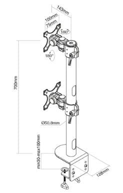 The Neomounts desk mount from Newstar, model FPMA-D960DVBLACKPLUS is a tilt, swivel and pivoting desk mount for two screens up to 49". Tilt (180°), swivel (360°) and pivot (160°) technology allows you to change the mount to any viewing angle to get the most out of your curved screen.Innovative cable management hides and guides cables from the mount to the curved screen Hide cables to keep your workspace tidy.