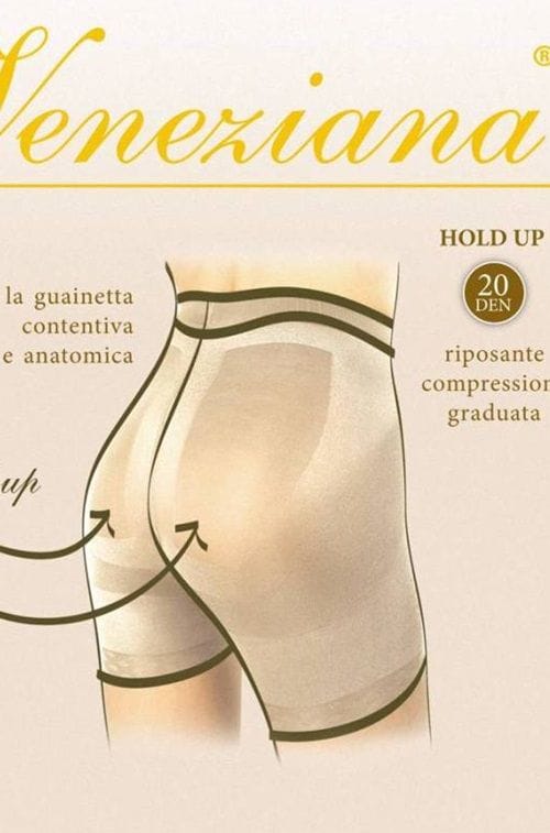 Modeling tights of the luxury brand Veneziana. Thanks to the appropriate zones, they gently emphasize the anatomy of the body, slightly lifting the buttocks. They have a great effect on blood circulation. Made of high-quality yarn. Small cotton wedge. Recommended to every woman. Thickness 20 DEN. Composition: 77% polyamide, 21% elastane, 3% cotton.