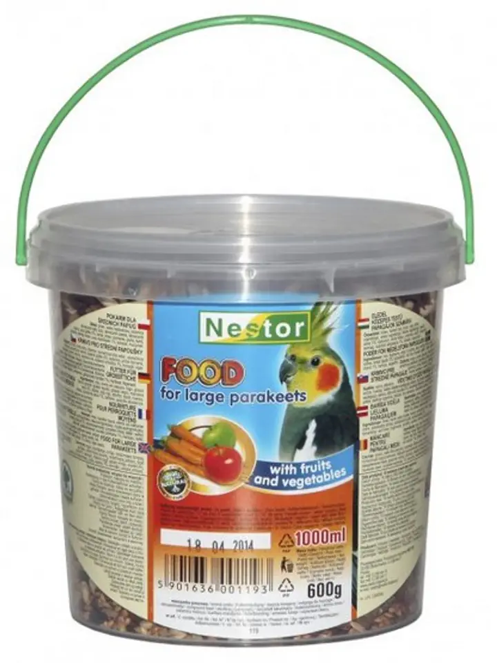 Food for medium-sized fruit and vegetable parrots is a varied and tasty mixture that forms the basis of the daily diet.