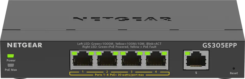 NETGEAR 5-Port Gigabit Ethernet High-Power PoE+ Plus Switch (GS305EPP) Managed L2/L3 Gigabit Ethernet (10/100/1000) Power over Ethernet (PoE) Black