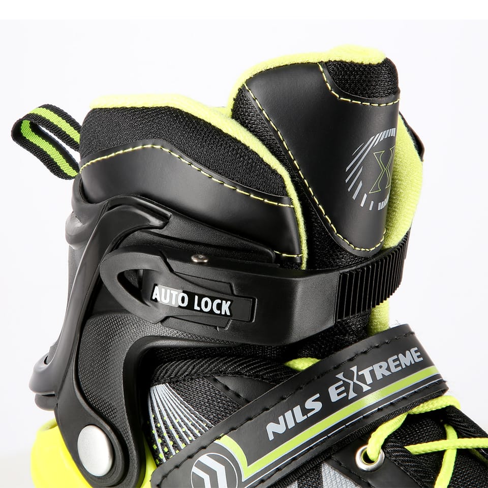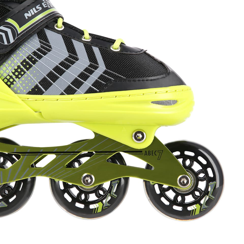 NH18192 Set Nils Extreme is a product designed for driving enthusiasts. It offers 4 configuration options. These are: skates, inline skates, roller skates and roller skates. Why choose NH18192Nils Extreme? Because it allows you to take full advantage of the advantages of playing hockey and inline skating. NH18192 Nils Extreme skates are characterized by very good running properties. This is due to the skids, made of high-quality stainless steel and the multi-lever fastening system, consisting of a velcro strap, buckle and laces, securely holding the feet. All this makes this model work well in all conditions, providing a unique driving experience. These are comfortable hockey skates, designed for beginners and intermediate users. Their high quality guarantees durability and resistance to mechanical damage. NH18192 inline skates are pure joy of riding. Thanks to the possibility of transferring an additional wheel to the rear axle, the skate functionally changes into a roller skate. This solution will help the youngest skaters to take their first steps in this sport. In turn, the installation of an additional wheel on the front axle turns the product into a roller skate. The skate is equipped with a special aluminum skid and brake, which ensures safety while riding. In turn, ABEC7 class wheels and bearings allow for lower rolling resistance, i.e. faster driving. The NH18192 Nils Extreme model also has the possibility of 4-stage shoe size adjustment, allowing it to be adapted to the user's needs. It is a way to save time and money. This solution allows you to extend their life, it also gives you the opportunity to use them more than one person. Specification: Shoe: semi-soft Insole: EVA material, high density foam Inner length of shoe (mm): 180-210 Fastening: two-section buckle, velcro strap, lacing Skate skid: high quality stainless steel Skate skid: Aluminum Wheels: PU 64mm/82A (S) PU 70mm/82A (M) PU 72mm/82A (L) Bearings: ABEC 7 Size adjustment button Notes: Not intended for commercial use Complies with PN-EN 13843:2009 Warranty 24 months