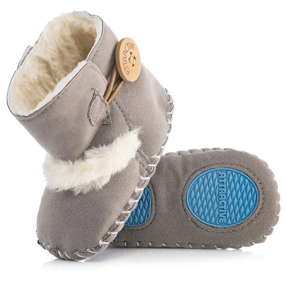 Tall and light non-stepped boots for the little ones. Insulated from the inside. Soft, textile sole with printed anti-slip system. Ideal for cold days on a trolley or for use at home.