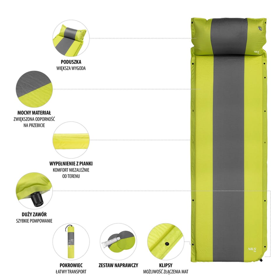 NILS CAMP self-inflating mat with cushion NC4349 Green-grey