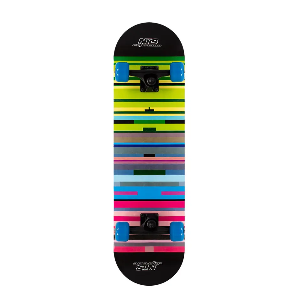 CR3108SA Erorr Nils Extreme to deskorolka o nowoczesnym designie. Deck jest specjalnie wzmocniony, profilowany oraz polerowany. Deskorolka została wykonana z 9-warstwowej laminowanej sklejki. Materiał gwarantuje dużą wytrzymałość połączoną z elastycznością. Jej górna część pokryto papierem ściernym (tak zwany grip). Wykorzystanie tego materiału powoduje zwiększenie przyczepności nóg. CR3108SA posiada kółka PU 54x36 mm, charakteryzujące się doskonałą szybkością. Podobnie łożyska klasy ABEC 7, które posiadają bardzo dobre właściwości jezdne. Specyfikacja: Wymiary: 78x20 cm Blat: 9-cio warstwowa sklejka laminowana profilowany obustronnie bardzo mocny polerowany Łożyska: ABEC 7 Truck: wzmocniony aluminiowy truck i baza Kółka: PU Blue 54x36 mm Grip: czarny, antypoślizgowy Waga: 2,17 kg Waga użytkownika: max 100 kg Uwagi: Nie przeznaczona do użytku komercyjnego Gwarancja 24 miesiące