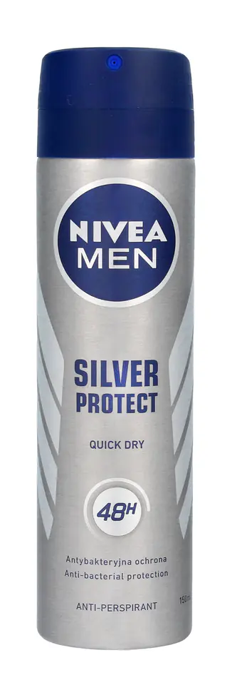 NIVEA FOR MEN Silver Protect antiperspirant, thanks to its innovative antibacterial formula with silver ions, effectively prevents the formation of unpleasant odor and its antiperspirant action provides long-lasting, 48h protection against excessive sweating.