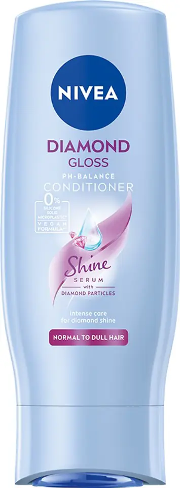 Mild nourisher NIVEA® Diamond Gloss with diamond dust. Improved formulas make the shampoo perfectly adapt to the natural pH level of your skin. Intensively cares, leaving hair smooth to the touch. Strengthens every strand of hair. It protects the dazzling shine of the hair and facilitates combing.