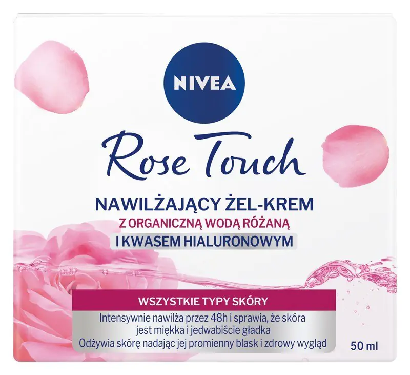 Discover the unique formula of NIVEA Rose Touch with vitamin-rich organic rose water and hyaluronic acid! Moisturizing gel-cream for the face from this line is quickly absorbed, leaving no feeling of stickiness on the skin. The unique formula combining organic rose water and hyaluronic acid provides the skin with intense, 48-hour hydration. The result: soft and silky smooth skin that impresses with a radiant glow and a healthy look every day!