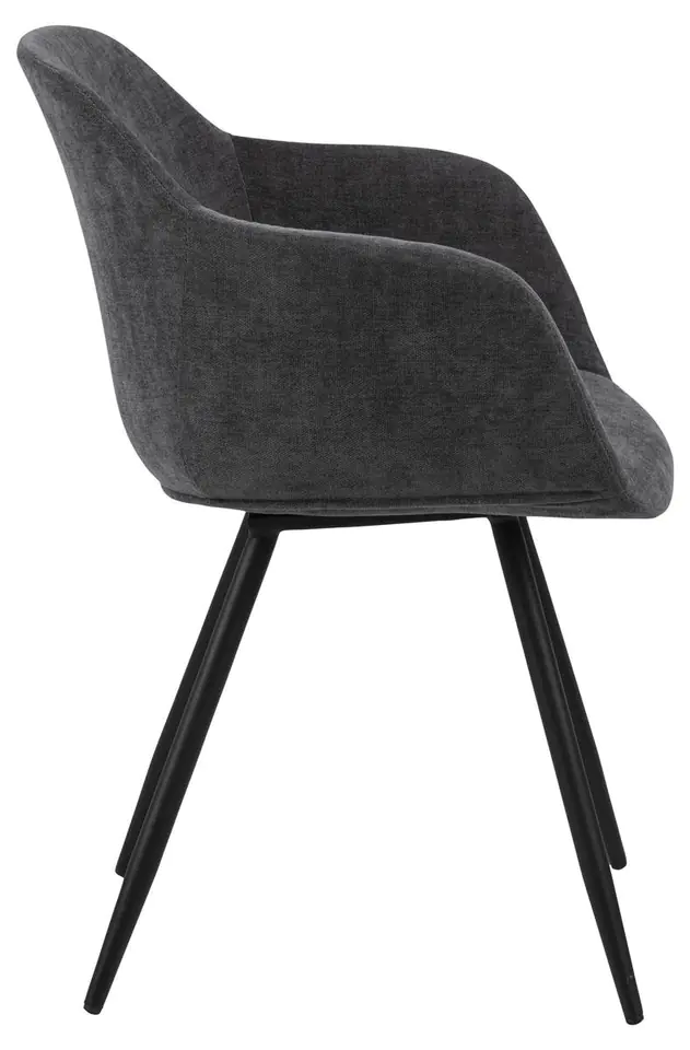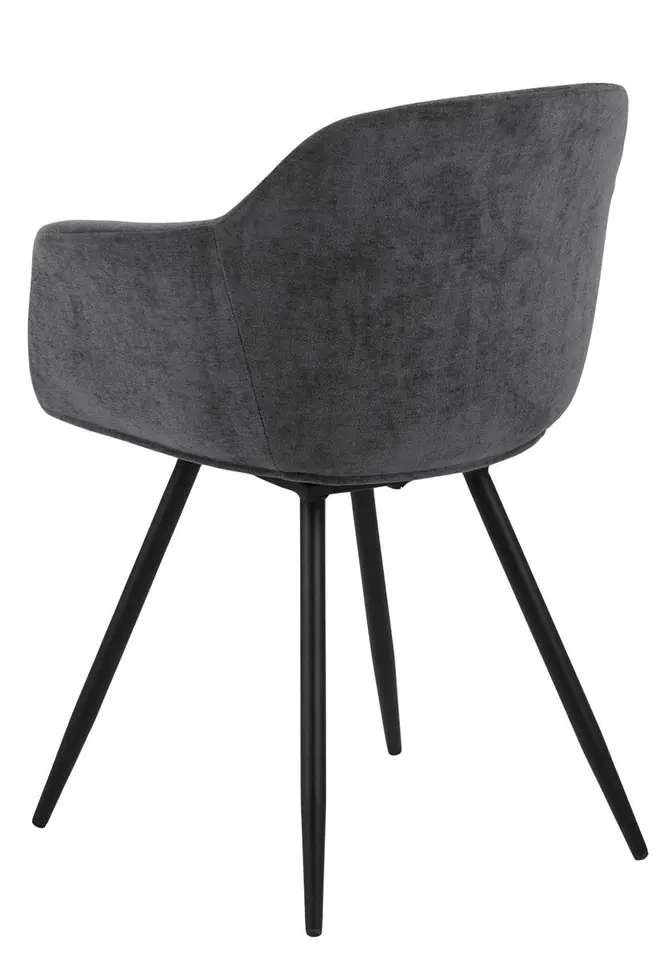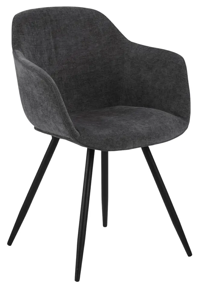 Noell's chair will fit into a glamorous dining room or a modern conference room. The legs made of powder-coated metal are connected to the seat made of polyurethane foam upholstered in Danny fabric dark grey 18. The chair has comfortable, ergonomic armrests. Dimensions: 58x56x83cm Chair weight: 7 kg