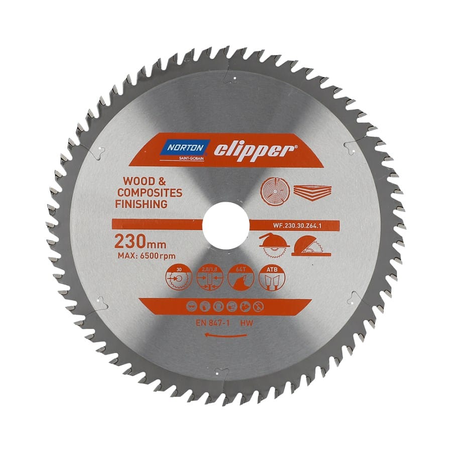 NORTON CIRCULAR SAW BLADE 230mm x 30mm x 64z WOOD & ATB COMPOSITES 2.8 / 1.8