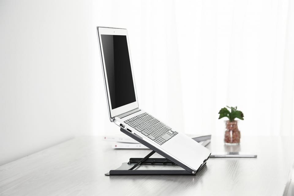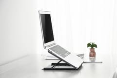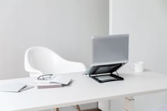 The DIGITUS portable notebook stand takes up little space on your home desk thanks to its slim design. The angle of the stand is easily adjustable in 5 levels, so it can be adapted to any type of notebook or desk height. The open frame construction ensures optimal ventilation. Designed for notebooks weighing up to 5 kg.