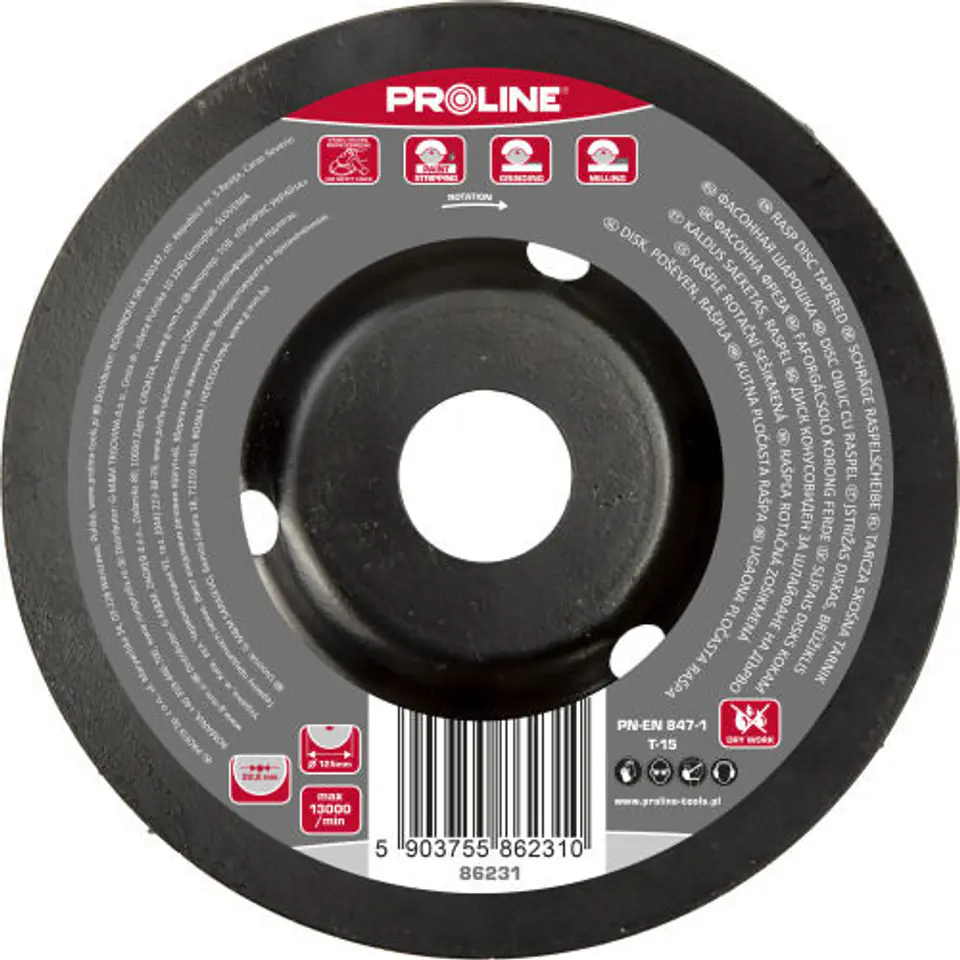 - Slanted disc with a rasp with medium multi-row teeth on one side