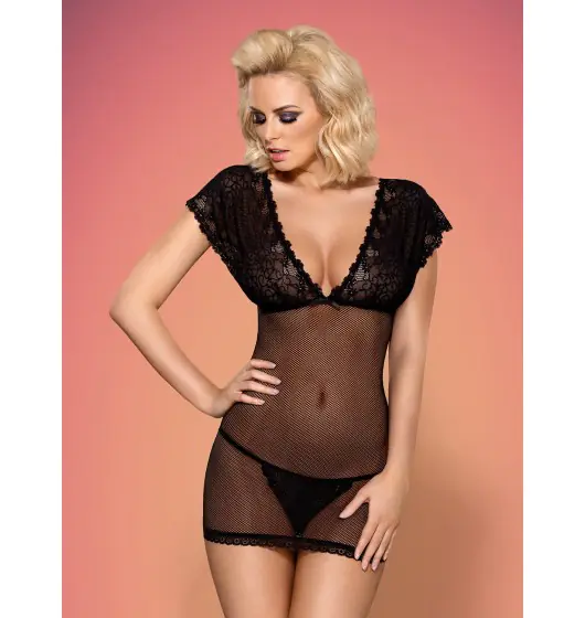 Soft fishnet and delicate lace are a fabulous pair. Why? They look amazing together and bring incredibly pleasant sensations! Wanna check it yourself? Put on this chemise, feel the nice thrill on your skin and… let your beloved join in! Look at the sexy details: - loose-fitting, lacy top and tight-fitting, knitted bottom – incredibly sensual combination! - row of tiny flowers on the deep neckline, sleeves and back - cute bow below the bust - edges finished with lace - the product includes chemise and adorable, lace thong - soft, elastic fabrics (90% polyamide, 10% elastane)