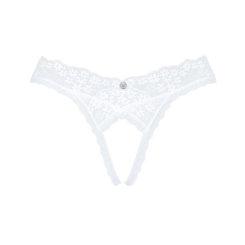 The Heavenlly open crotch thong is a sophisticated choice for women who want to combine elegance with a touch of eroticism. Made from high quality materials, they guarantee not only comfort when worn, but also durability, making them the perfect piece of lingerie for special occasions. The delicate lace trim gives them a subtle charm, and the jewellery pendant on the front catches the eye, adding a unique touch to the whole. The unique cut of the thong emphasises the feminine curves, accentuating the buttocks and providing a glamorous finish to any outfit. Available in size M/L, they are designed for a waist circumference of 74 to 83 cm and a hip circumference of 95 to 105 cm. Discover sensuality and elegance that will make every moment unforgettable - whether you wear them under everyday clothes or a negligee.