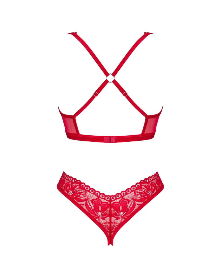 - czerwony komplet Lacelove składający się z biustonosza i stringów