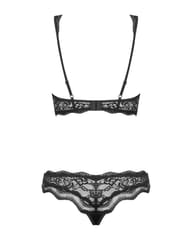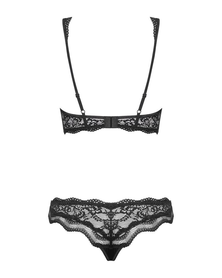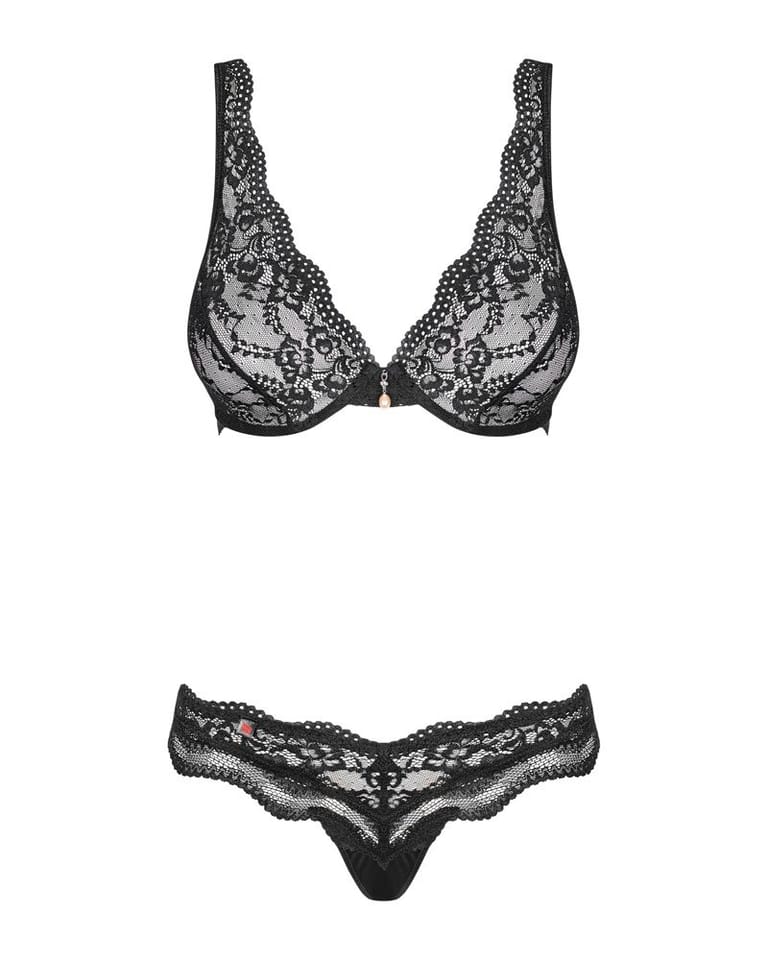 Sexily tailored bra and briefs in intense black create a unique set of Luvae. A small pearl in the middle of the bra adds chic, and the whalebone used in the cups will give comfort and great well-being while wearing.